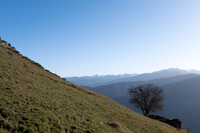 Je vous invite à marcher sur les crètes et ne pas suivre le chemin situé un peu en bas. Vous aurez une superbe vue sur les Pyrénées.