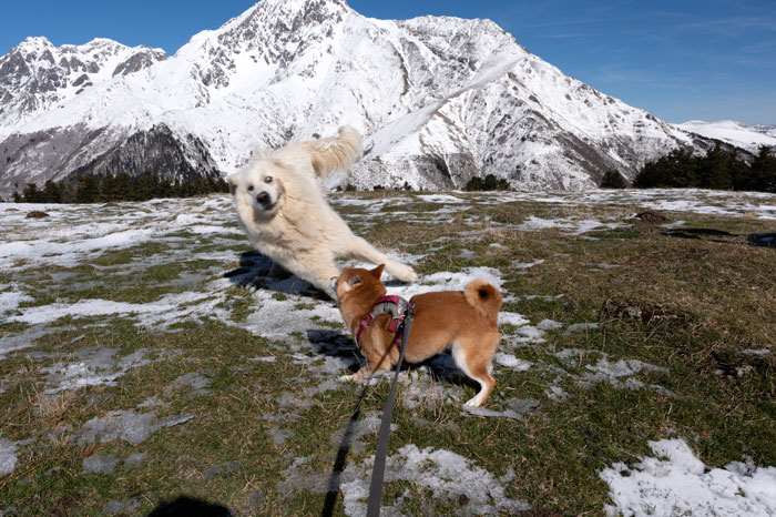 Jeux entre un patou et un shiba